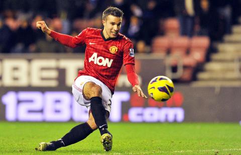 Manchester United striker Robin van Persie bagged a contrasting double in a 4-0 win at Wigan Athletic on Tuesday to hand Roberto Mancini another painful reminder of why he looks the difference in the title race.