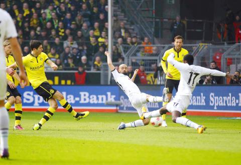 With runaway league leaders Bayern Munich at relegation-threatened TSG 1899 Hoffenheim yesterday, Dortmund’s victory trimmed the Bavarians’ lead to 14 points.