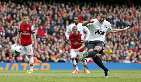 Robin van Persie returned to frustrate Arsenal as the Manchester United striker rescued a 1-1 draw at the Emirates Stadium in London, while Reading and Queens Park Rangers were relegated from the Premier League on Sunday after playing out a 0-0 draw.