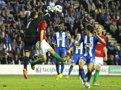 Wigan’s Scottish star Shaun Maloney found the target in the 41st minute with a trademark free-kick, but unfortunately for him it was straight into the arms of Vorm.