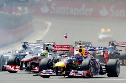 Webber, who fell to 15th on the opening lap, fought back to finish second in his first race since announcing he was quitting Formula One at the end of the season ahead of two-time champion Fernando Alonso in the second Ferrari and Hamilton, who stormed from the back to finish fourth despite his tire failure.