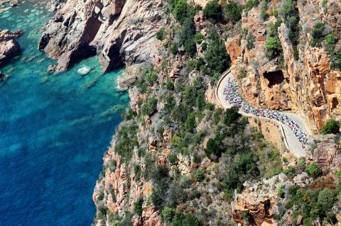 It was a short, but tricky stage, with the route up Corsica’s west coast featuring practically no flat sections and a total of four climbs, most notably the category 2 ascent of the Col de Marsolino just 13.5km from the finish in Calvi.