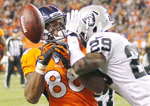 The Raiders offense made one big play before the game got out of hand. Terrelle Pryor (19 for 28 for 281 yards), who left the game late with a concussion, hit Denarius Moore in the middle of the field, and Broncos defensive backs Duke Ihenacho and Dominique Rodgers-Cromartie whiffed on the tackle.