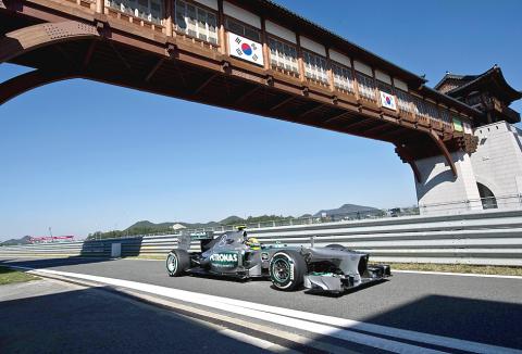 The Mercedes driver lapped the anti-clockwise Yeongam circuit, set against a backdrop of coastal marshes and South Korean shipyard cranes, with a best time of 1 minute, 39.630 seconds in the morning and 1:38.673 after lunch.