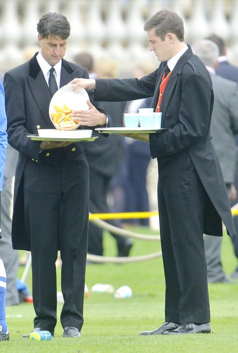The full-sized pitch was about the only conventional aspect of a match, watched by about 750 people, with palace footmen serving refreshments in style at the break.
