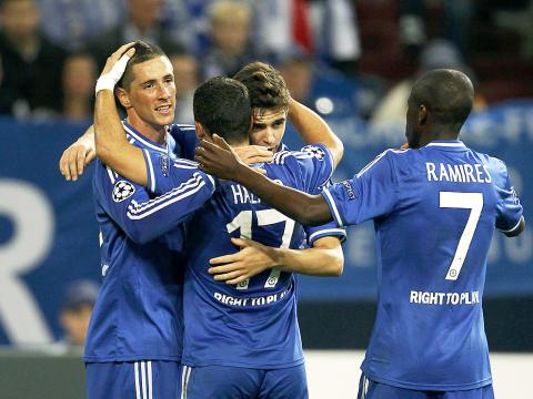 In Group E, Chelsea moved level on six points with Schalke at the top with a 3-0 win in Germany, where Torres celebrated his 100th start for the club with the fifth-minute opener and another after 69 minutes, before Eden Hazard added a late goal.