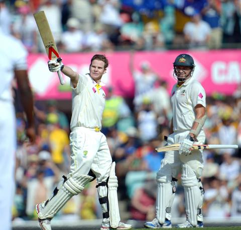 Smith, though, charged inexorably towards his third Test century, teeing it up with a thunderous six off Borthwick to move to 99 and passing the milestone with a clattering four, his 16th, two balls later.