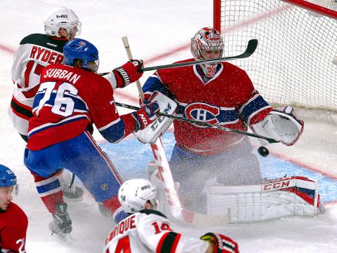 Jaromir Jagr passed Mark Messier to move into seventh place in career NHL goals and Martin Brodeur made 29 saves to lead the New Jersey Devils to a 4-1 win over the Montreal Canadiens on Tuesday.