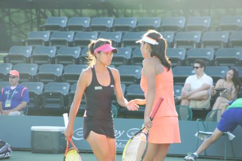 Doubles world No. 2 Hsieh and world No. 1 Peng were 6-3, 6-4 victors over seventh-seeded Australians Ashleigh Barty and Casey Dellacqua in a rematch of last year’s Wimbledon final, which was also won by the cross-strait duo.