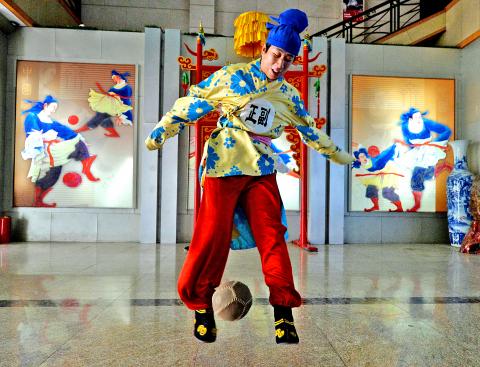 Different types of cuju existed in ancient China, but the competitive game still played today involves keeping a leather ball stuffed with feathers off the ground without using arms or hands, before heading or kicking it though a hole above head height.