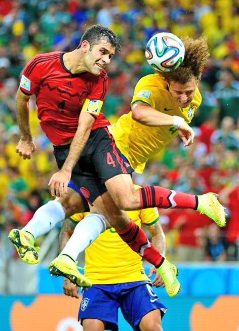 That meant Oscar was moved from the right flank, where he had been outstanding against Croatia, to the left, but it was from the right that the home side created their first opening, a cross from Dani Alves being headed goalward by Neymar at the back post, only for Ochoa to make a superb save flying low to his right.