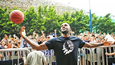 The Cleveland Cavaliers star was greeted by pianist Lang Lang at the Wukesong Sports Center in Beijing in front of hundreds of basketball fans.