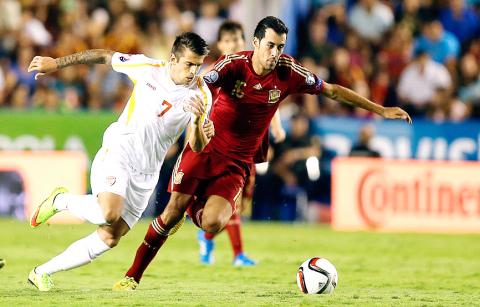 Looking to bounce back from their World Cup debacle in Brazil, Spain were much too strong for the 76th-ranked Macedonia as Paco Alcacer, Sergio Busquets, David Silva and Pedro also scored in La Roja’s biggest win since they beat Tahiti 10-0 at last year’s FIFA Confederations Cup.