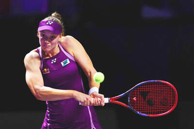 LOCAL SUCCESS: In the doubles, Taiwan’s Hsieh Su-wei and Jelena Ostapenko of Latvia defeated Italians Sara Errani and Jasmine Paolini in straight sets Elena Rybakina on Monday punched her ticket to the WTA Finals last four with an impressive 3-6, 6-1, 6-0 victory over second seed Iga Swiatek in round-robin play in Riyadh. After cruising past Amanda Anisimova in her opener on Saturday, Rybakina claimed her second win of the week to guarantee herself top spot in the Serena Williams Group. Anisimova on Monday rallied back from a set and a break down to triumph 4-6, 6-3, 6-2 in her all-American battle with seventh seed Madison Keys, who has been eliminated from the competition. “Madi was playing so well, it was quite a battle out there,”