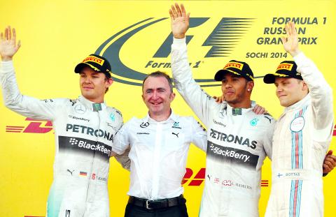 Putin also presented the trophies, in what Hamilton described as a “kind of surreal” moment, with the drivers making sure he had left the podium before spraying the champagne that had lain virtually untouched last weekend following Jules Bianchi’s horrific accident in Japan.