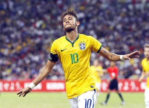 Neymar scored all four goals in Brazil’s 4-0 demolition of Japan on a pitch that resembled Rio de Janeiro’s Copacabana beach in places and may have spared Javier Aguirre’s side further punishment.
