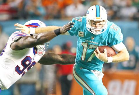 Tannehill was sacked five times, but completed 26 of 34 passes for 240 yards and threw touchdown passes to Brandon Gibson and Jarvis Landry. Lamar Miller rushed for 86 yards for the Dolphins, who trailed 9-3 before outscoring Buffalo 19-0 over the final 18 minutes.