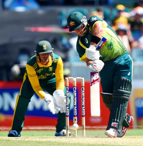 Fellow opener David Warner pounded 53 off 50 balls, with six fours and two sixes, in a first-wicket stand of 118 in 20 overs. He looked set for a big score before he found De Villiers, who took a leaping catch at midwicket.