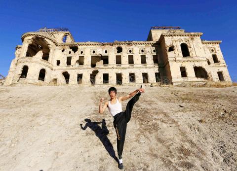 The photographs and videos he posts on his Facebook page, executing high kicks and looking intensely down the lens, have now earned him viral fame. He has amassed more than 50,000 followers on Twitter, al-Jazeera has filmed him in action and Reuters has gone to Kabul to interview him.