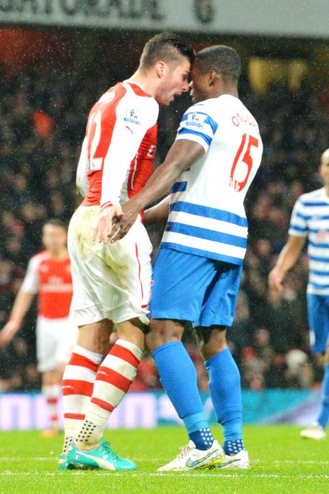 France striker Giroud received a straight red card in the 53rd for headbutting QPR defender Nedum Onuoha directly in front of the referee, jeopardizing Arsenal’s chances of three points in a game the hosts had controlled.