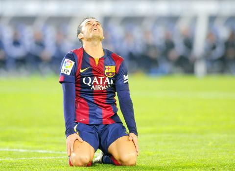 Barca boss Enrique’s huge gamble to leave Messi and Neymar among nearly 300 million euros (US$35.8 million) of talent on the bench took fewer than two minutes to backfire in San Sebastian as Alba stretched to reach Sergio Canales’ cross, but could only turn the ball into his own net.