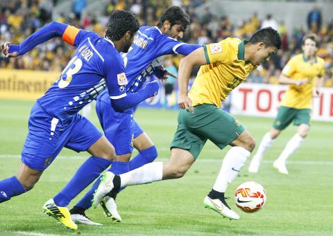 Australia pushed relentlessly after the break, with Matthew Leckie cannoning a left-foot shot off the crossbar after Cahill had a low shot parried away by Youssef.