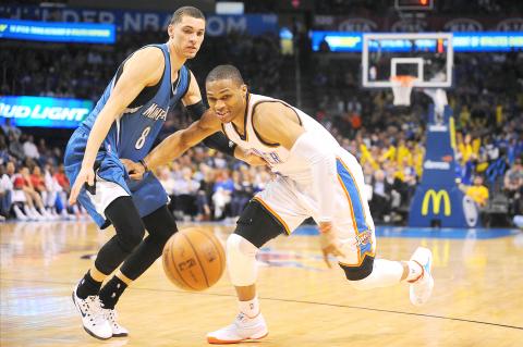 Durant sat out after spraining the big toe on his left foot on Sunday against Cleveland. Westbrook shot just 7 for 22 from the field, but was 4 for 6 and scored 11 points in the fourth quarter to help the Thunder remain in control. Serge Ibaka added 13 points and a season-high 19 rebounds.