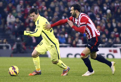 Messi took his tally for the season to 33 with the opener on 16 minutes, but he had a touch of fortune as his free-kick struck Aymeric Laporte in the Bilbao wall and wrong-footed goalkeeper Gorka Iraizoz.