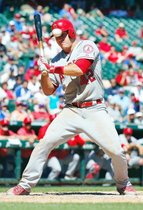 Mike Trout had three hits, scored twice and drove in a run to back another win in Texas for Hector Santiago as the Los Angeles Angels beat the Rangers 10-2 in a series finale on Wednesday.