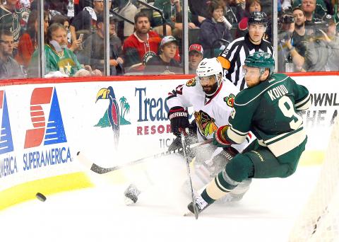 However the Wild’s desperation shots in the final minute were either wide or turned aside by commanding Chicago goaltender Corey Crawford, who made 34 saves.