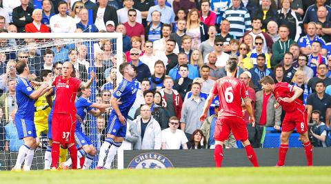 However, opposing skipper Gerrard got Liverpool back on level terms in similar fashion when the midfielder headed in a free-kick at the far post a minute before halftime.