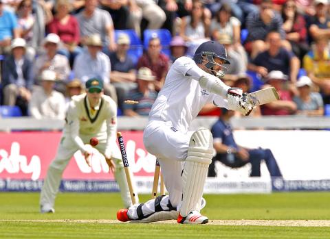 Next over there was a suggestion that Ali, on 34, might have got the thinnest of edges to Starc, but there was only a half-hearted appeal and the batsman survived.