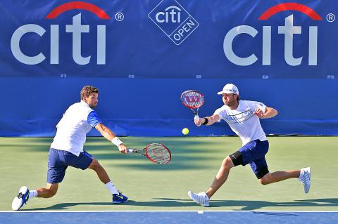 In the men’s doubles, the second stop on Mardy Fish’s farewell tour began with a victory.