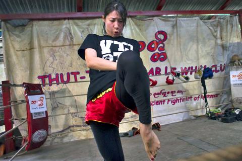Moe Pwint Oo shoots the grimy punchbag a steely glare before slamming her fist into it, striking a blow for equality as she practices Myanmar’s homespun martial art Lethwei — a sport that encourages head-butting and grants victory by knock-out only.