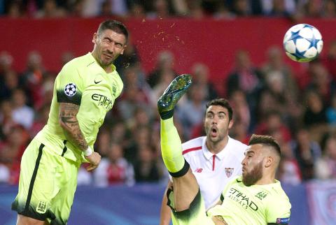 City banished memories of their recent Champions League struggles as a confident 3-1 win in Seville qualified them for the last 16 with two games to spare in Group D.