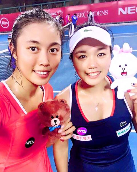 Sisters Chan Hao-ching and Chan Yung-jan advanced to the quarter-finals of the Hong Kong Open yesterday, while fellow Taiwanese Lee Ya-hsuan and Kotomi Takahata were 3-3 against British duo Naomi Broady and Heather Watson when their first-round clash was suspended due to rain.
