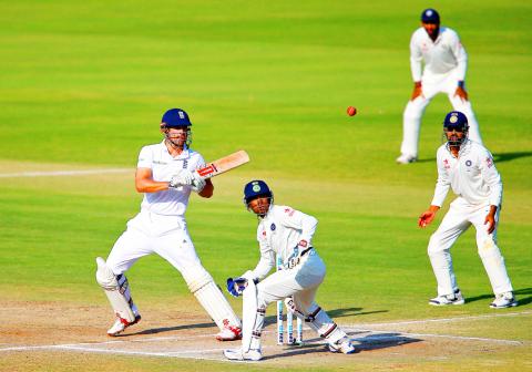 Late strikes by India’s spinners jolted England after skipper Alastair Cook’s dogged half-century gave the visitors hope on the fourth day of the second Test in Visakhapatnam, India, yesterday.