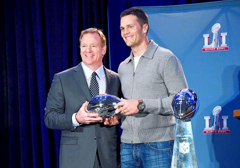 After losing a court fight to NFL commissioner Roger Goodell and serving a four-game ban to start the season, New England quarterback Tom Brady on Monday accepted something else from Goodell — the Super Bowl Most Valuable Player trophy.