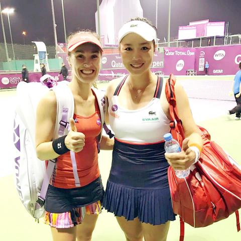 Chan Yung-jan celebrated her new doubles partnership with former world No. 1 Martina Hingis with a win at the Qatar Open yesterday, but it was not such a good day for fellow Taiwanese Chuang Chia-jung in a rain-hit Doha.