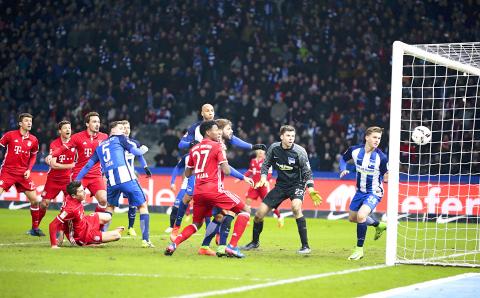 Hertha scored through Vedad Ibisevic with the Bosnian volleying in for his ninth goal and his first since November last year, with Bayern lacking any game plan, despite controlling possession.