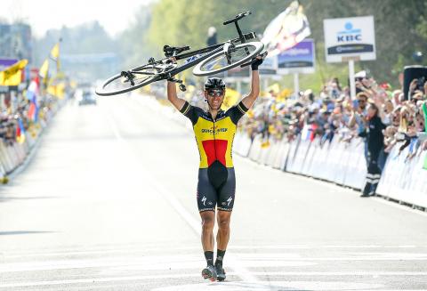 The 34-year-old Belgian champion had come to the end of a daring 55km-long solo breakaway to win the prestigious 261km “Monument” one-day cobbled classic.