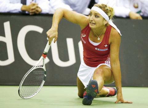 In Minsk, Timea Bacsinszky beat Aryna Sabalenka of Belarus 6-4, 7-5 to pull Switzerland level 1-1.
