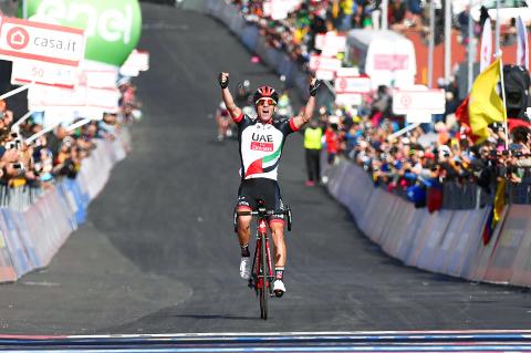 The UAE Team Emirates rider, who also won a mountain stage in the 2015 edition, took a solo victory ahead of Ilnur Zakarin of Russia on the 181km stage from Cefalu, with Team Sky’s Geraint Thomas in third place.