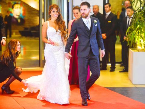 Following the private ceremony, the couple appeared happy and relaxed as they walked a red carpet before hundreds of journalists at a hotel and casino complex, Roccuzzo wearing a tight, mermaid-style gown by Spanish designer Rosa Clara.