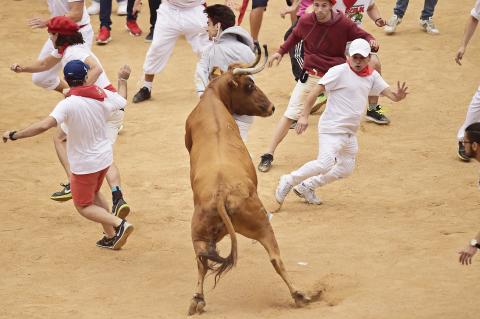 The bulls from the Puerto de San Lorenzo ranch, which debuted at the festival, yesterday completed the 850m cobbled-street course in 2 minutes, 22 seconds. That is well under the average of three minutes for the run.