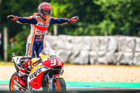 In his third win of the season, defending world champion Marquez was in truly imperious form, starting from pole and dominating, holding his nerve during an early change from wet tires as he temporarily dropped down the field before gradually lap after lap extending his lead.