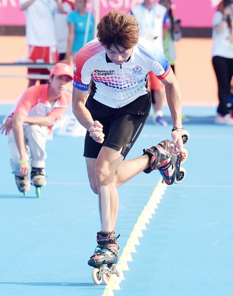China’s Pan Yushuo yesterday won gold in the men’s roller speed slalom at the Taipei Summer Universiade, beating Taiwan’s Chen Yu-chi and Wu Song-yan, who took silver and bronze respectively.