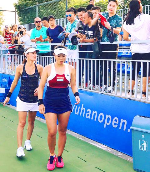 Taiwan’s Chan Yung-jan and Martina Hingis of Switzerland cruised into the quarter-finals of the doubles at the Wuhan Open yesterday, while Taiwan’s Hsieh Su-wei gave top seed Kristyna Pliskova a fright in the first round of the singles at the Tashkent Open.