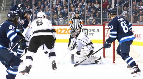 Laine was helped down the tunnel to the dressing room about a minute and a half into the second period. He was not putting any weight on his left foot after blocking a shot by Kings defenseman Alec Martinez that hit him in the lower leg.