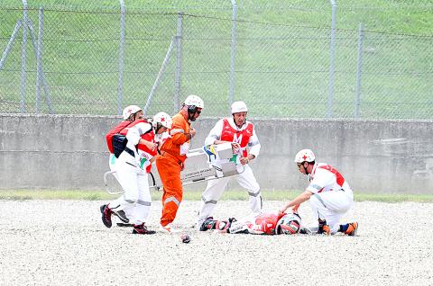 He was treated trackside and later transported by helicopter to Careggi University Hospital in Florence, Italy, for scans.